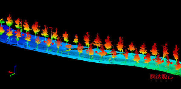 3.利用俯視角度進(jìn)行拉框選擇,自動(dòng)提取出路邊行道,樹(shù)的位置坐標(biāo)信息,以及冠幅、樹(shù)高等屬性信息。