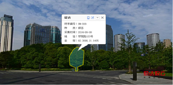 4.結(jié)合全景影像數(shù)據(jù),可截取對(duì)應(yīng)樹(shù)木照片,并自動(dòng)保存至屬性數(shù)據(jù)庫(kù)。